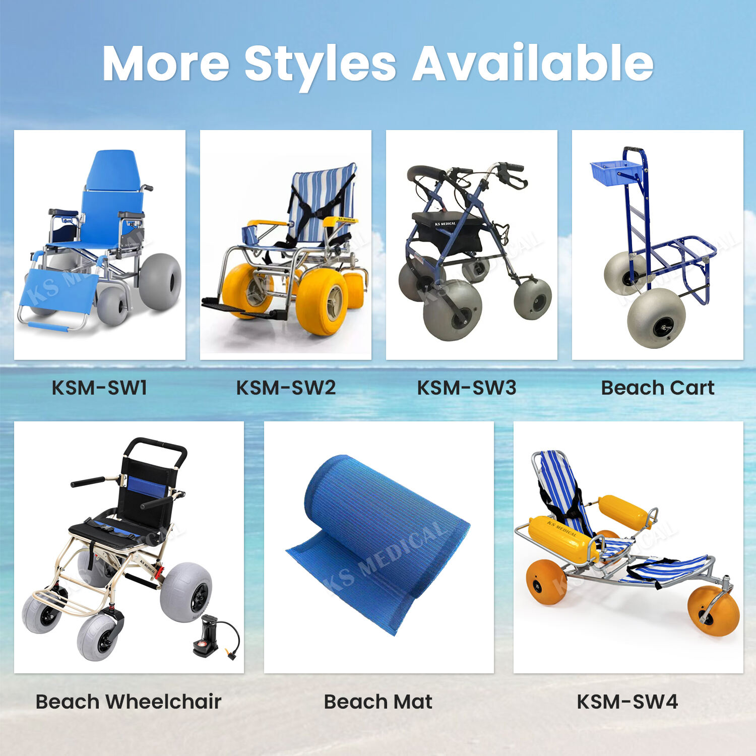 Vår strandrullstol är särskilt designad för att erbjuda säker och bekväm rörlighet i sandterräng, på gräsytor och andra utomhusytor. Den är konstruerad för personer med rörlighetsproblem och gör det möjligt för användaren att njuta av stranden, parker och utomhusmiljöer utan hinder.